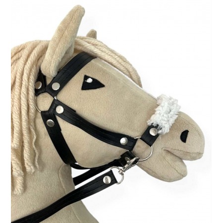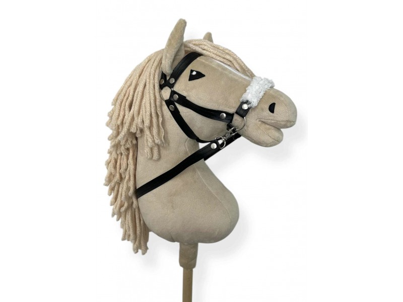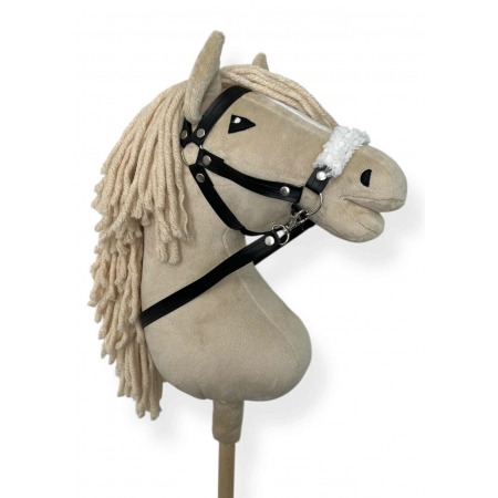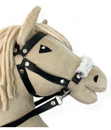 BLACK BRIDLE FOR HOBBY HORSE MADE OF ARTIFICIAL ECO LEATHER WITH FUR