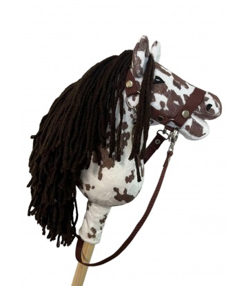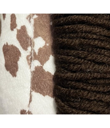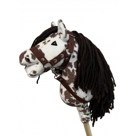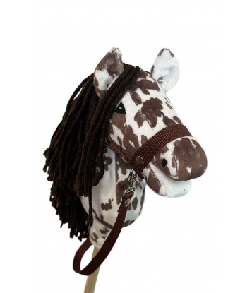The horse is made of white-brown, smooth minky knit.