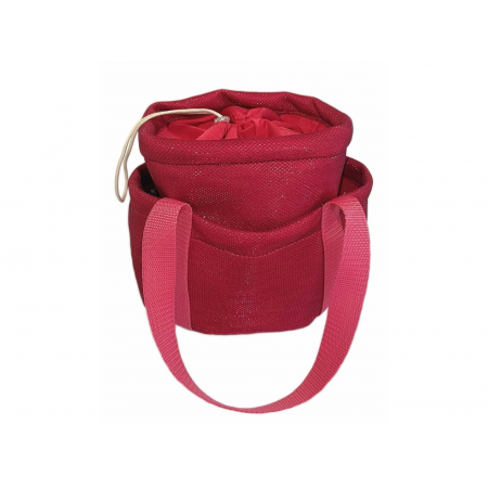 The bag has handles to hold in the hand, a large main compartment and practical side pockets. The main compartment is closed with drawstrings, which ensures the safety of accessories during use.