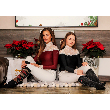 Unikalna koszula konkursowa z długim rękawem w kolorze bordowym. Wykonana z technicznego materiału, który jest niezwykle funkcjonalny,oddychający, nie krępujący ruchów. Do wykończenia górnej części koszuli oraz mankietów została wykorzystana miękka i delikatnie błyszcząca francuska koronka najwyższej jakości. Na lewym ramieniu koszuli znajduje się delikatny haft. Koszula zapinana jest z tyłu na napy, pod zapięciem znajduje się ozdobne oczko.
