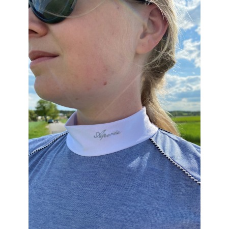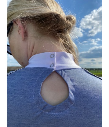 Koszula konkursowa Summer Edition 01 została wykonana z najwyższej jakości delikatnego materiału, który jest przewiewny, zapewni maksymalny komfort i swobodę ruchu. Na stójce znajduje się ozdobny haft z nazwą marki, który nadaje jej eleganckiego stylu. Dodatkowo ramiona zostały ozdobione biało-granatową wypustką, a tył koszuli został zapięty na napy.