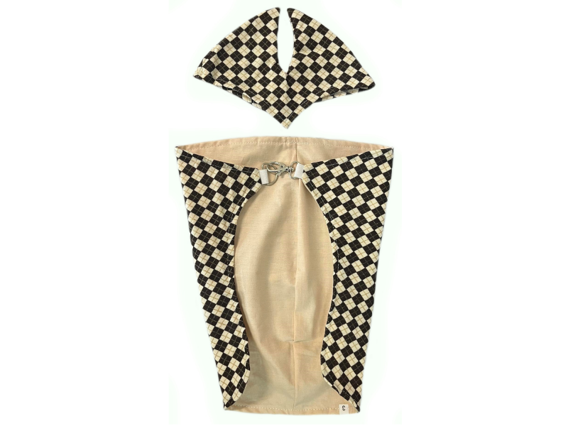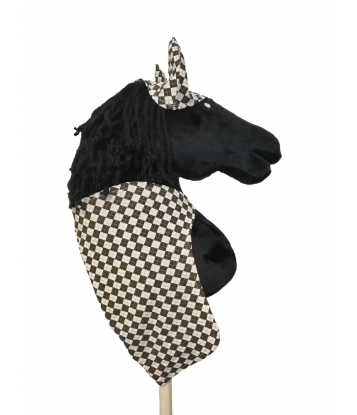 ZESTAW HOBBY HORSE: DERKA I NAUSZNIKI - ECRU-BRĄZ SZACHOWNICA MAŁA