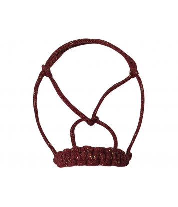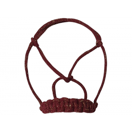 Halter wykonany z bordowego sznureczka. Uwiąz wykonany z bordowego sznureczków.