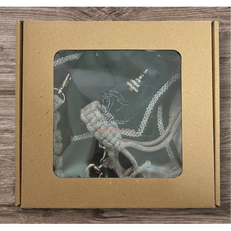 Halter i uwiąz wykonane z srebrnego sznureczka.